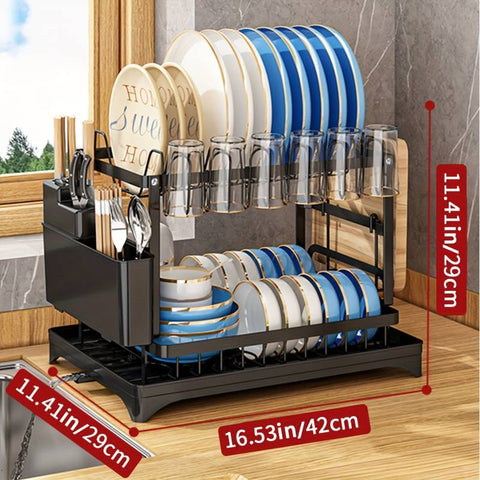 Notre égouttoir à vaisselle est un outil essentiel pour votre maison. Il offre un moyen efficace et organisé de sécher à l'air la vaisselle, les verres, les ustensiles et les ustensiles de cuisine fraîchement lavés, éliminant ainsi le besoin de plans de travail inesthétiques et encombrés de vaisselle mouillée.