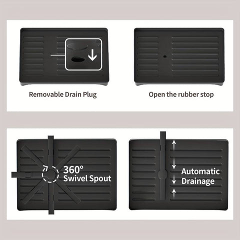 Le système de drainage consiste en un plateau incliné au bas de la grille, qui permet à l'eau excédentaire de s'écouler efficacement. Il empêche l'accumulation d'eau stagnante sur le casier, ce qui peut entraîner des conditions peu hygiéniques, des odeurs désagréables et la formation de moisissures. Le système de drainage contribue à maintenir la propreté et la longévité du support lui-même en empêchant l'accumulation d'eau stagnante, qui peut causer de la rouille ou d'autres dommages au fil du temps. Il garantit également un séchage plus rapide et plus complet de la vaisselle et des ustensiles, réduisant ainsi la nécessité d'un séchage manuel supplémentaire et minimisant les taches d'eau.