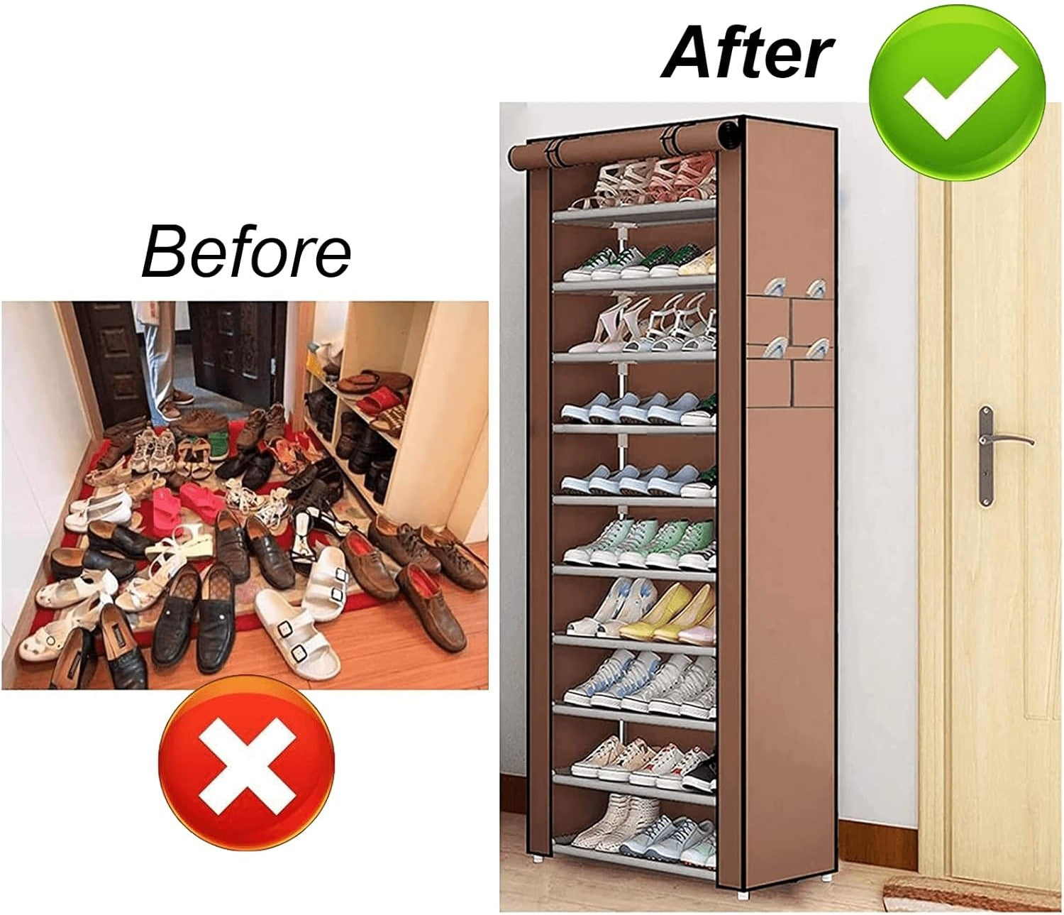 Dites adieu au désordre et organisez facilement votre collection de chaussures avec le meuble à chaussures 10 niveaux. Sa structure robuste et stable supporte plusieurs paires, garantissant une capacité de rangement optimale sans encombrer votre espace.