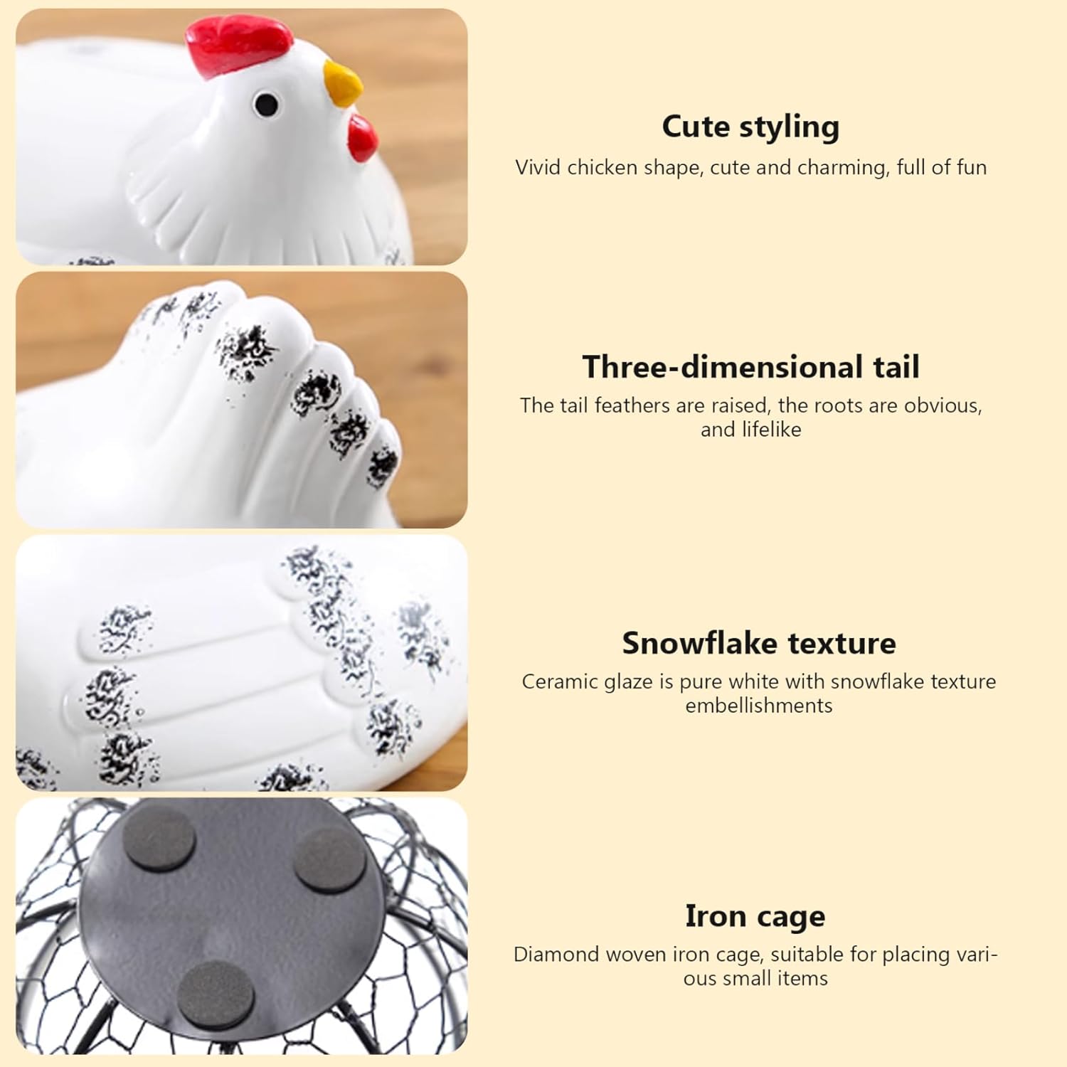 - Couvercle en céramique en forme de poule avec une finition émaillée et des motifs flocons, pour une touche décorative raffinée