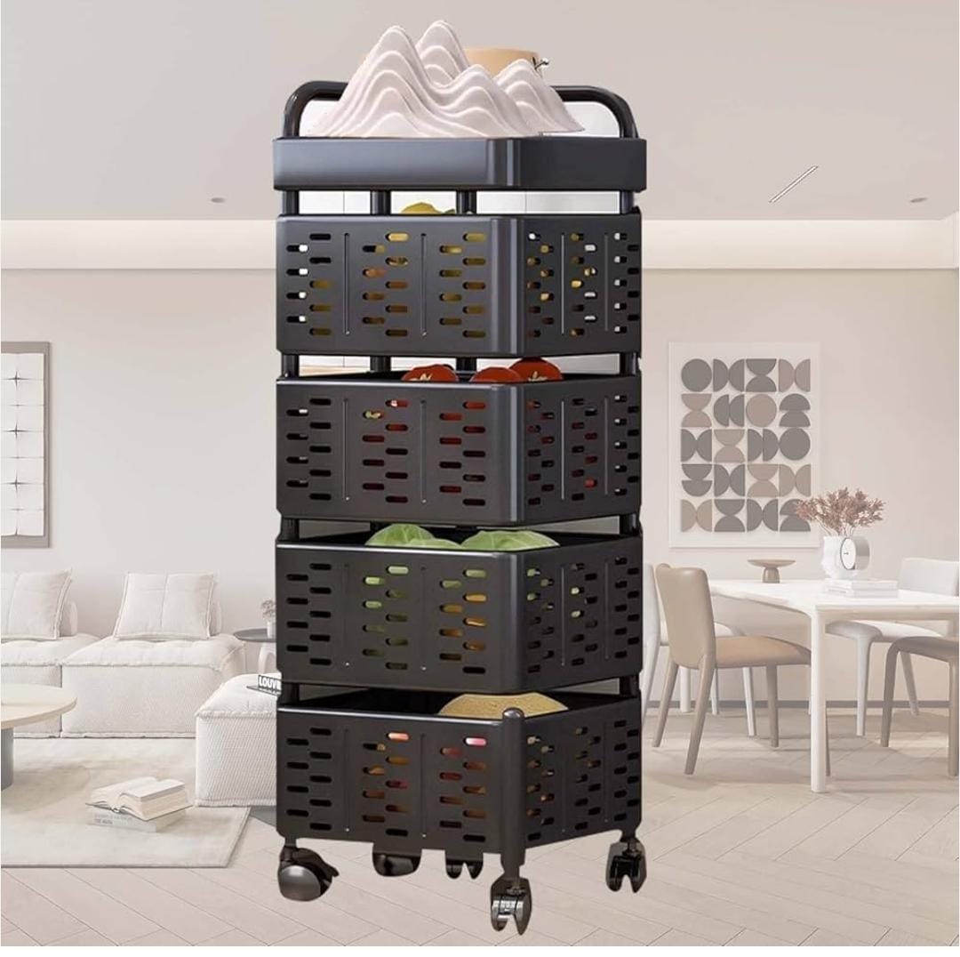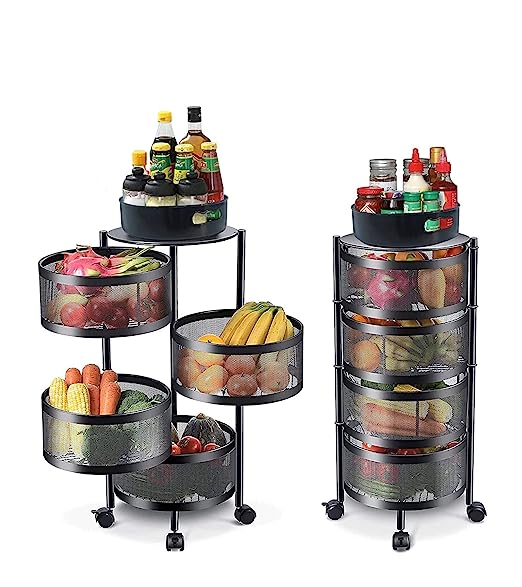Maximisez votre espace de rangement et gardez vos fruits et articles ménagers bien organisés avec ce panier à légumes rotatif de 4 Niveaux